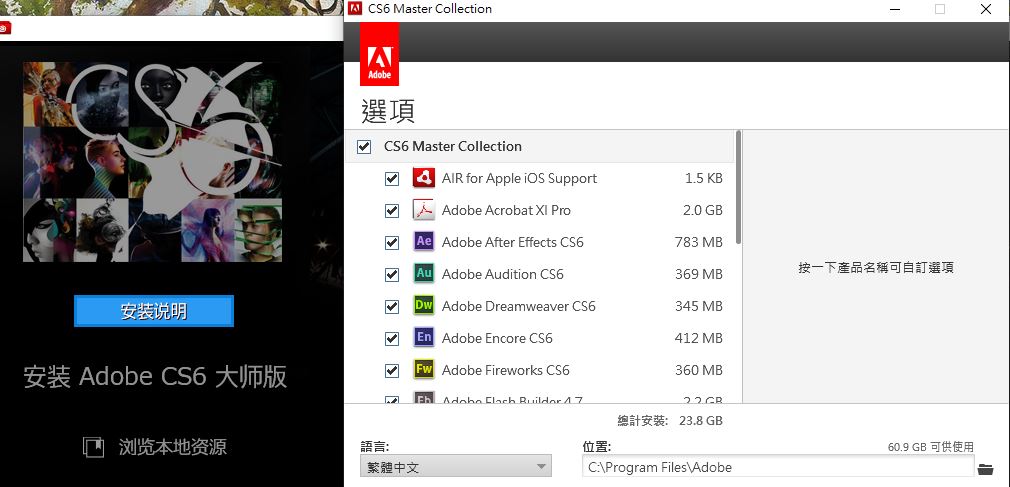 Adobe CS6 6.0.0 大師版 CS6集成的版本