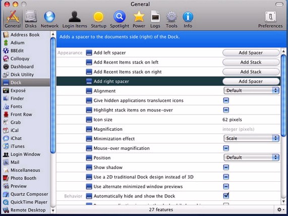 開啟和關閉Macosx上百個隱藏功能軟體