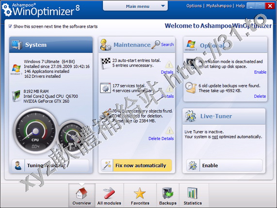 • Ashampoo WinOptimizer 7.v7.25 英文正式版(功能全面的Windows系統優化軟體)